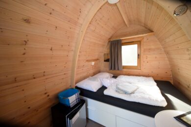 Niet alleen in je eentje kom je tot rust, want de Panorama XL pod heeft 4 slaapplekken: een tweepersoonsbed en een slaapbank (beiden 140 x 200). In tegenstelling tot de andere pods op Campland Arcen heeft de Panorama XL pod een klein keukentje en een eigen badkamer met douche en wc. Helemaal privé dus. Als het buiten koud is, zet je binnen de verwarming aan. Wil je je lekker laten verwennen? Reserveer dan een lekker ontbijtje! Noem het luxe kamperen, noem het glamping Nederland: wij noemen het gewoonweg genieten van een originele overnachting. (De prijzen zijn inclusief schoonmaakkosten en exclusief toeristenbelasting).